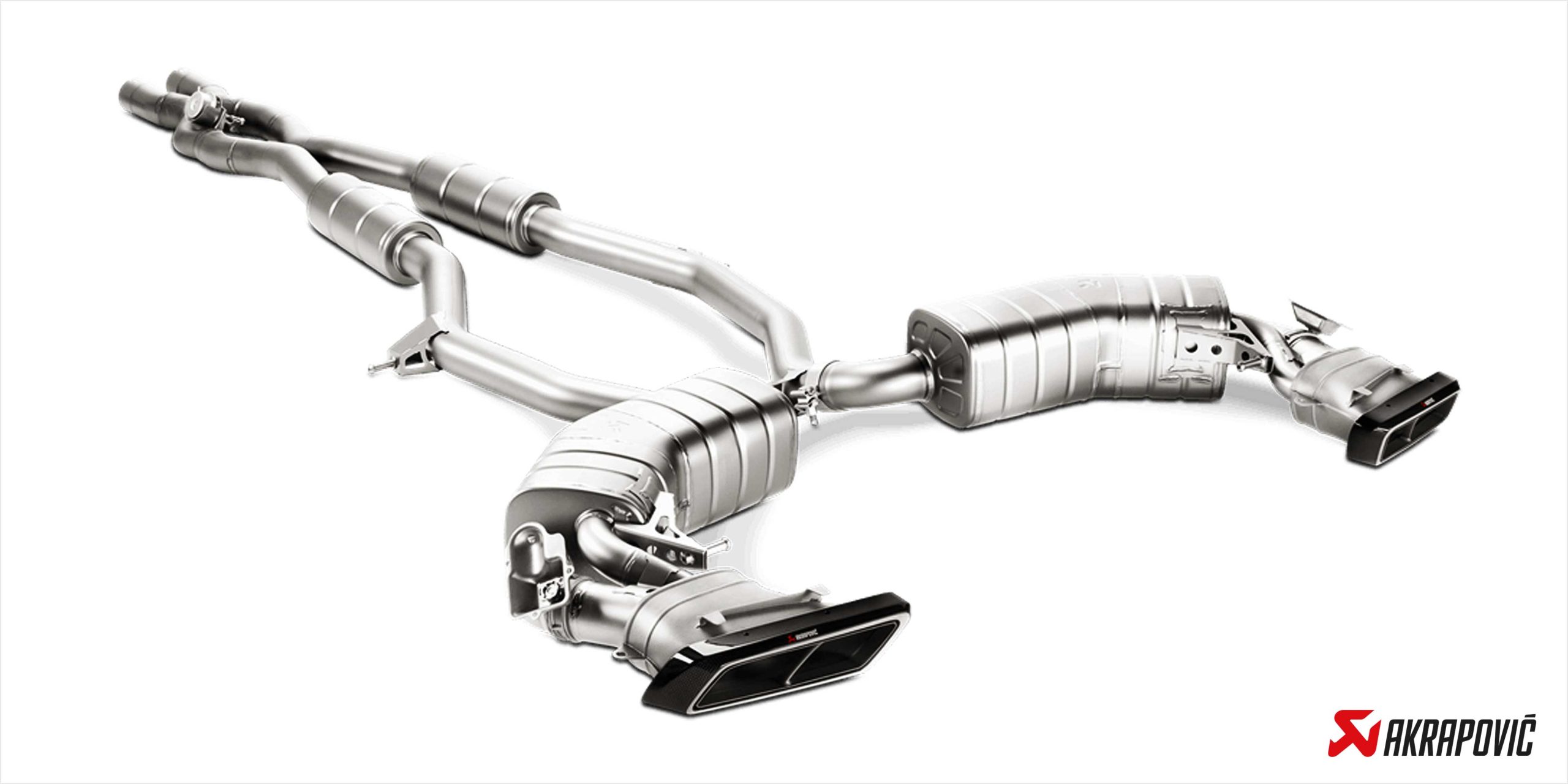 The Evolution Line features a unique sound profile that sets off the engine’s cylinder firing sequence to its full potential. Through the use of the car’s own electronics and the Akrapovič Sound Kit, different sound characteristics are available through the control of the active X connection – which features a guided and precisely machined valve flap to alter the tones. With the valve flap open the sound is fuller, more continuous, and resonant, but in the closed position the system produces a pure, strong roar reminiscent of a muscle car. With an impressive increase in the power and torque curves across the entire rev range, this system also improves the performance of the V8 biturbo engine. It features for the first time a special technique of seamless integration between the titanium and carbon-fibre composites to create a continuous finish for the system’s tailpipes and show the system off to its full extent.
