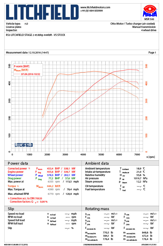 Following on from our very successful Audi RS6 (C7) tuning project, we have decided to offer a stage upgrade system for the brilliant Audi RS3 (8V: 2012-2015). Working with a local owner, we have spent a huge amount of time on our dyno developing a progessive stage structure to allow you to safely tune your car from the standard figures of 362 bhp and 343 lbft.